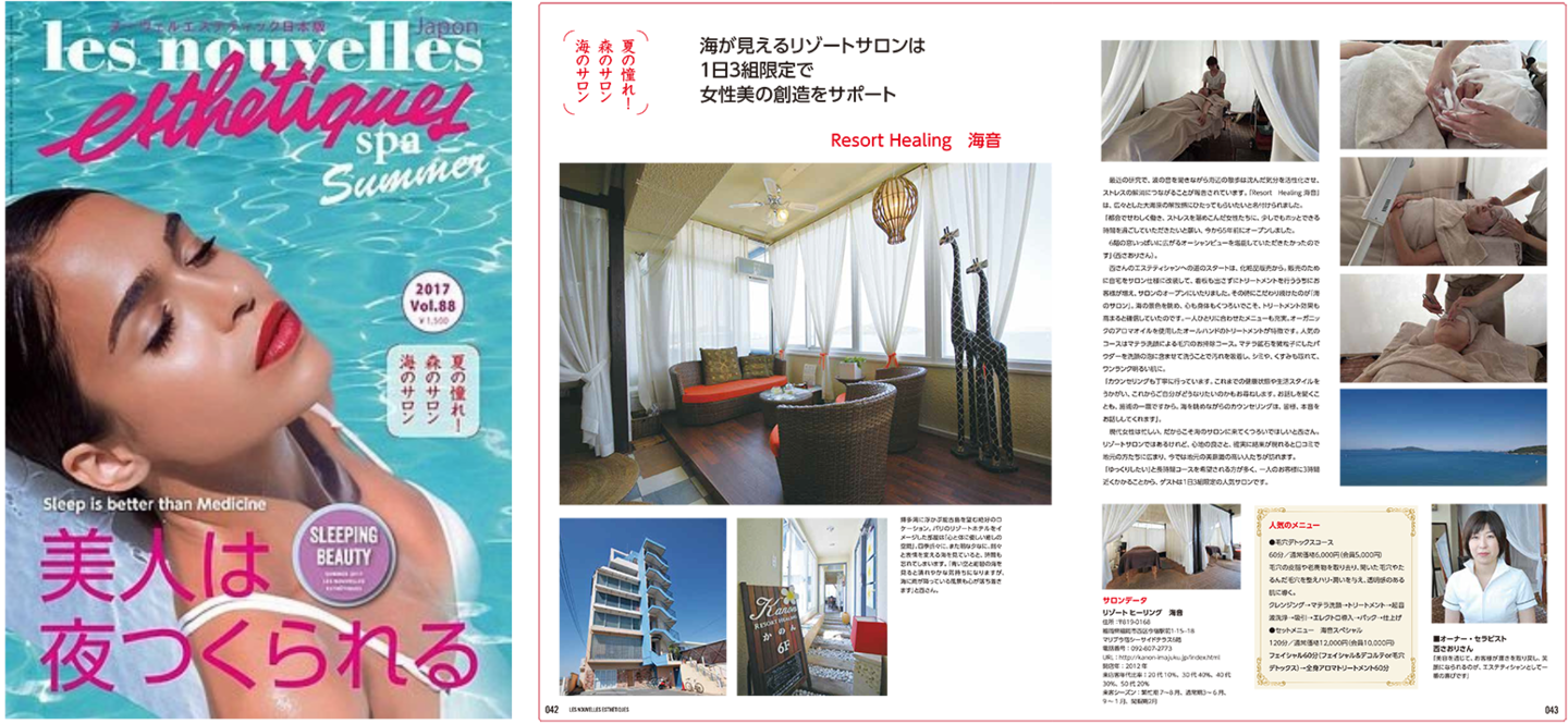 海が見える場所で、いつも頑張ってる女性の方に、より美しく 心も身体も元気になっていただき、少しでも「ホッ」とできるお時間を過ごしていただきたい。という想いから「お肌をより美しく、心と身体に優しい空間」を2012年今宿・長垂れ海岸沿いに店舗オープンいたしました。